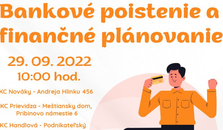 Kontaktné centrá Prievidza, Handlová a Nováky Vás pozývajú na odborný seminár s názvom „Bankové poistenie a finančné plánovanie“.